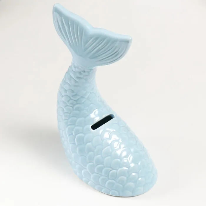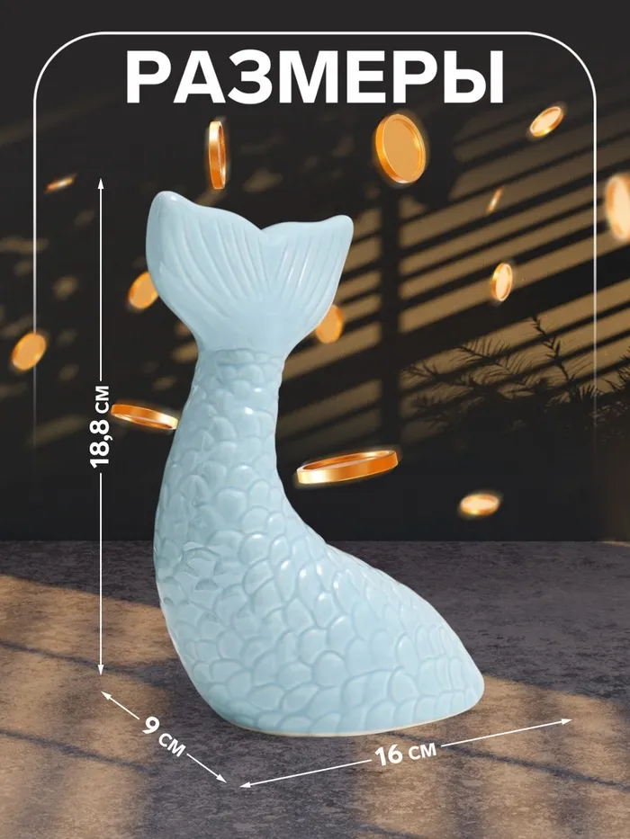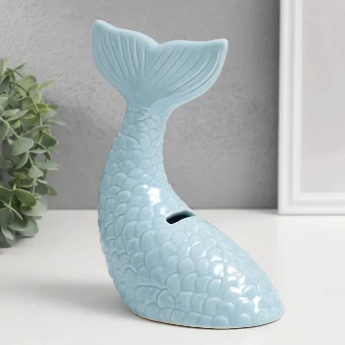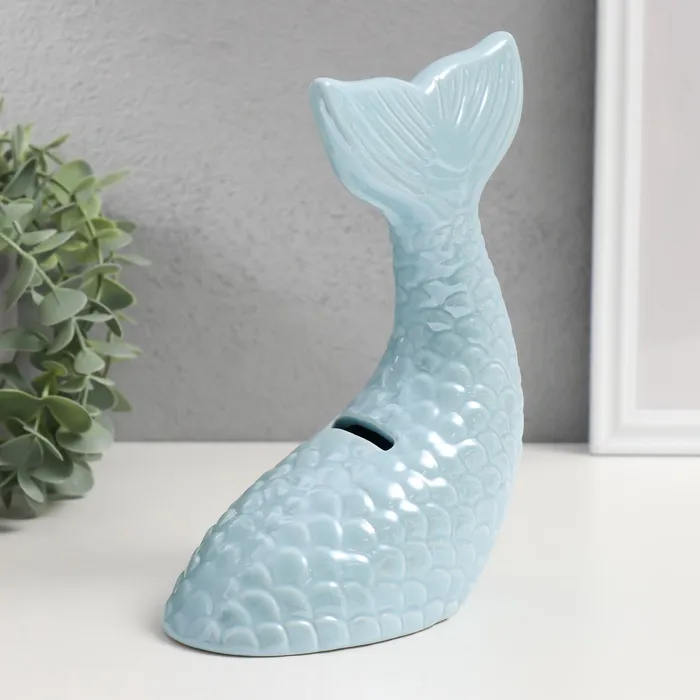 Копилка для денег «Хвост русалки», керамика, голубой перламутр, 16×9×18.8 см — Характеристики