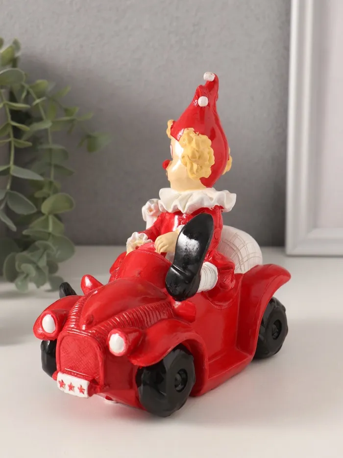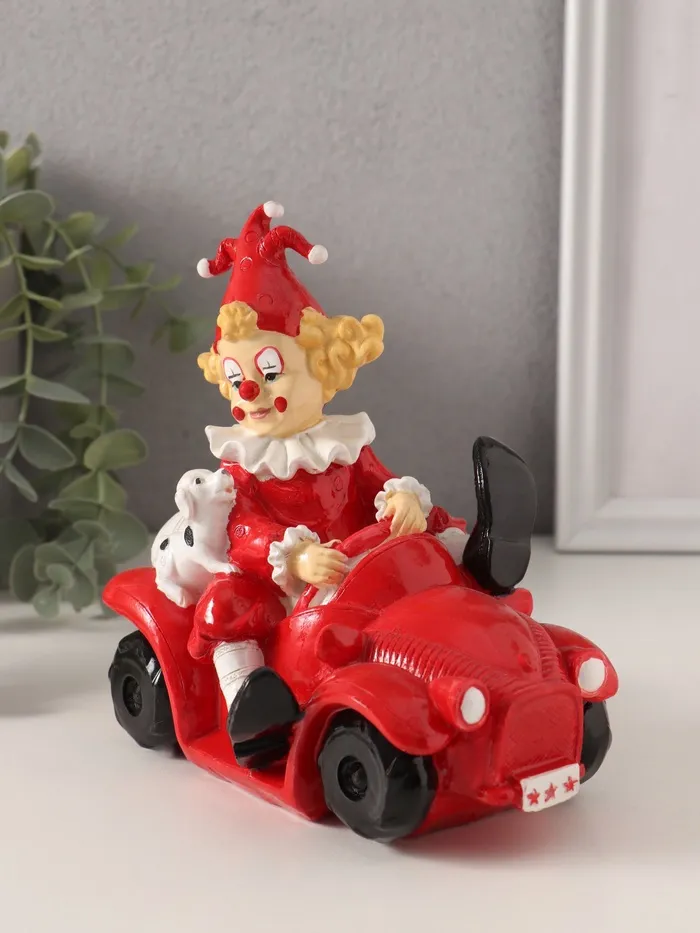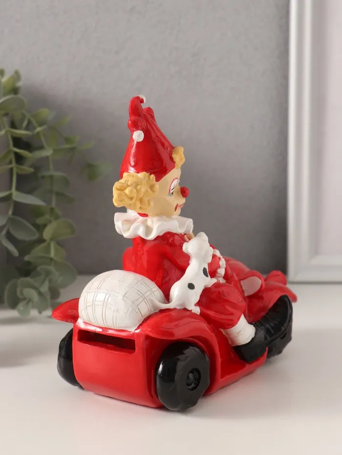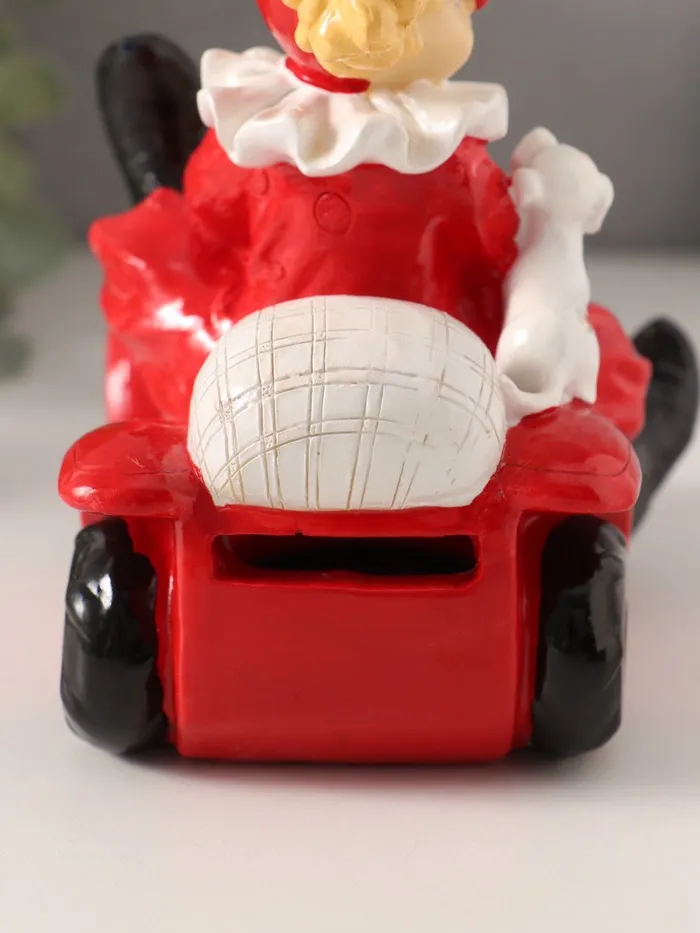 Копилка для денег «Клоун с пёсиком в автомобиле», полистоун, красно-белый, 14.5×9.5×15 см — Характеристики