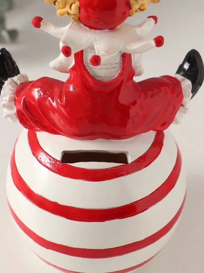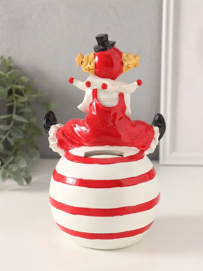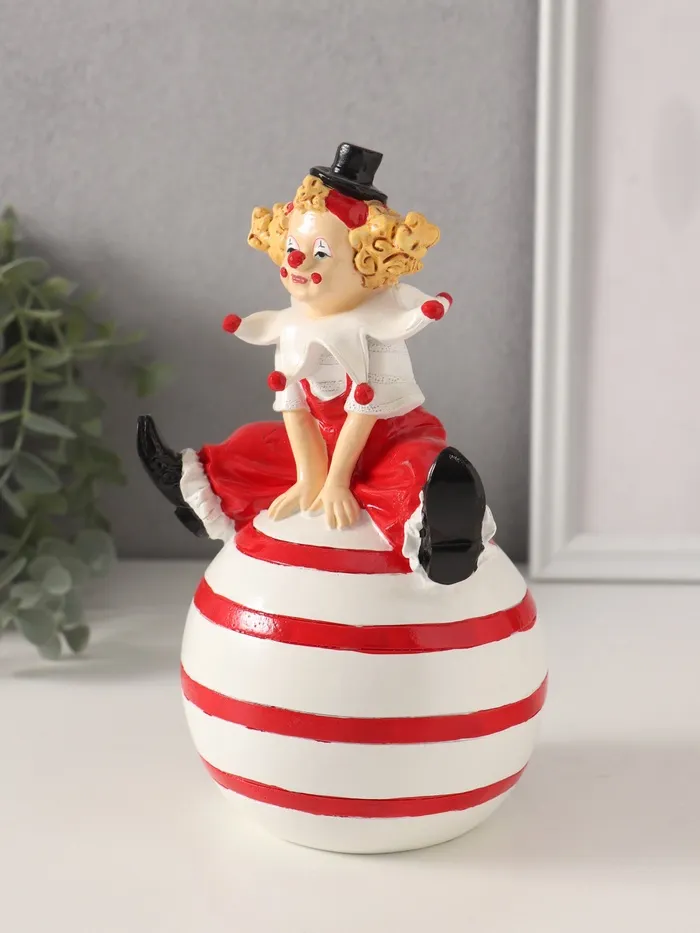 Добавьте нотку веселья и оригинальности в ваш интерьер с этой яркой копилкой в виде клоуна, балансирующего на надувном мяче. Этот необычный аксессуар не только поможет вам копить мелочь, но и станет стильным украшением, которое привлечёт внимание и вызовет улыбку у каждого, кто его увидит.