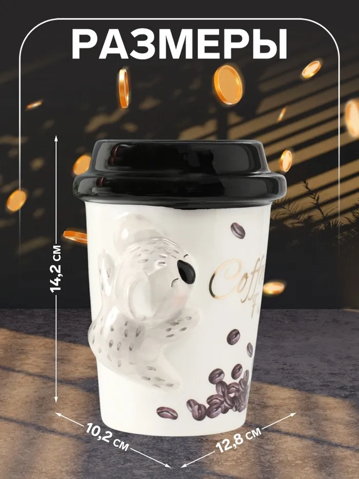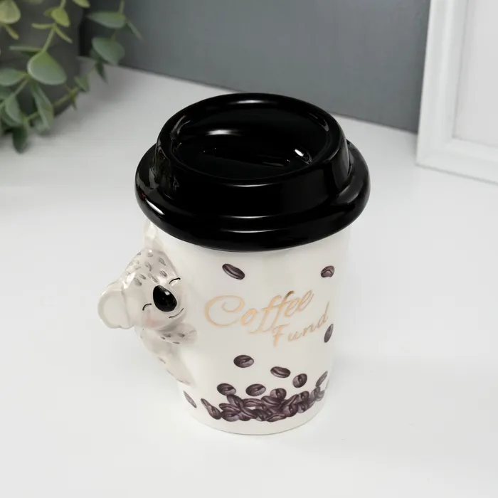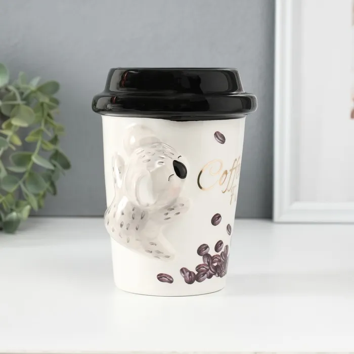 Копилка для денег «Коала с кофе», керамика, 10.2×12.8×14.2 см — Характеристики