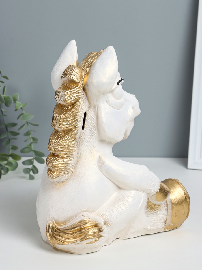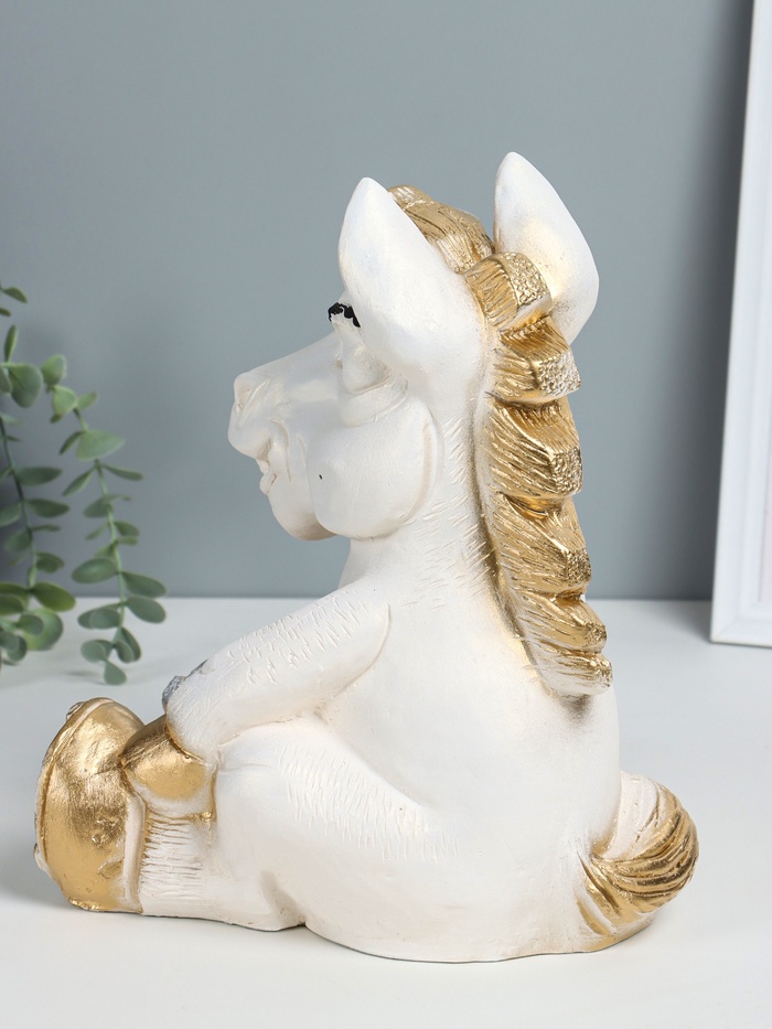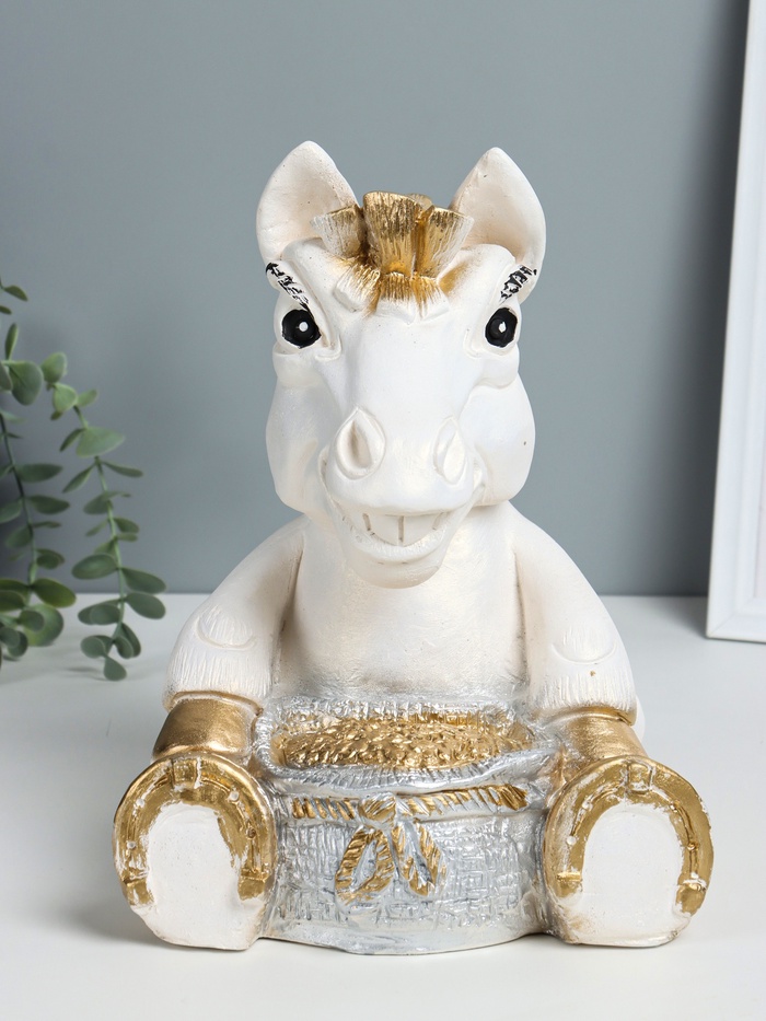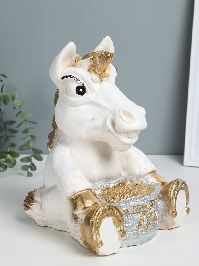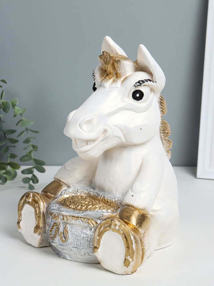 Копилка для денег «Конь с мешком», гипс, 28×22×22 см, белый с золотом — Характеристики