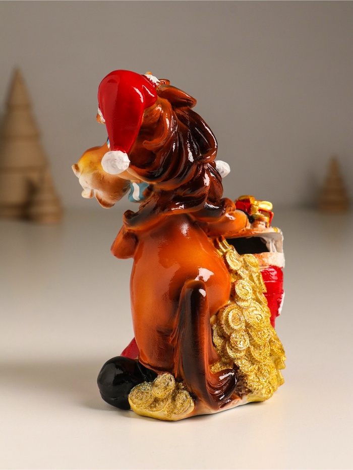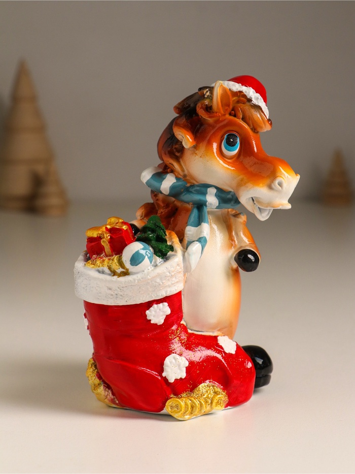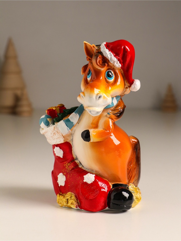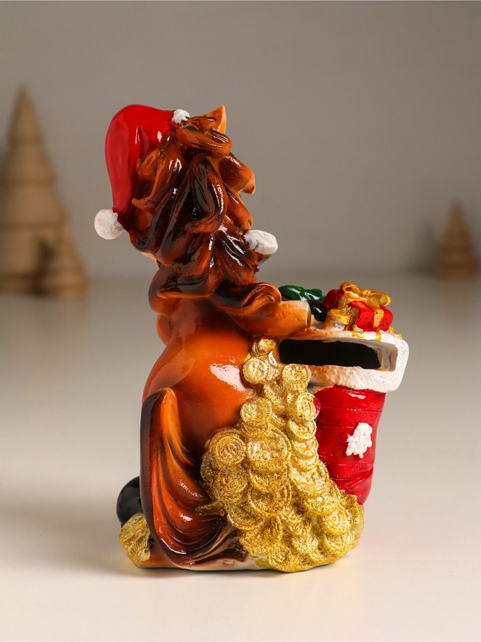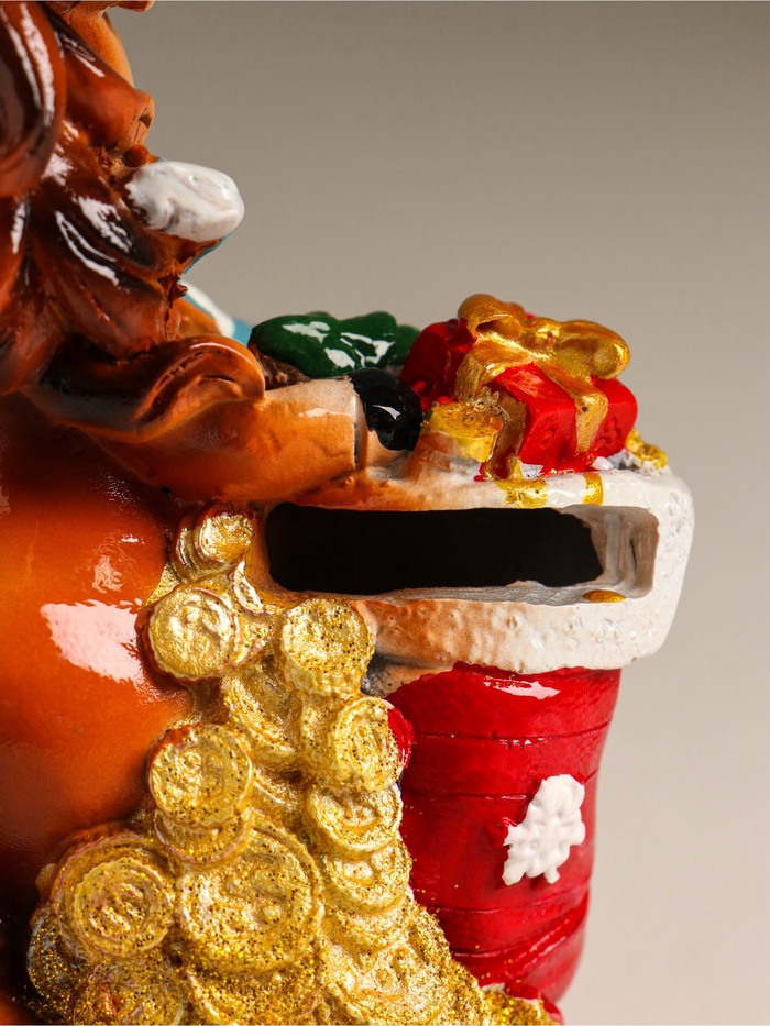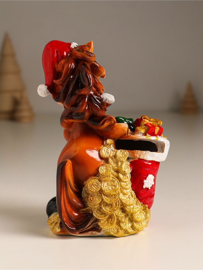 Эта копилка из полистоуна воплощает в себе тепло праздничного настроения и практичность повседневного использования. Яркий и выразительный образ лошадки в колпаке с носком, наполненным подарками, создаёт атмосферу ожидания чудес и вдохновляет к бережному отношению к финансам.