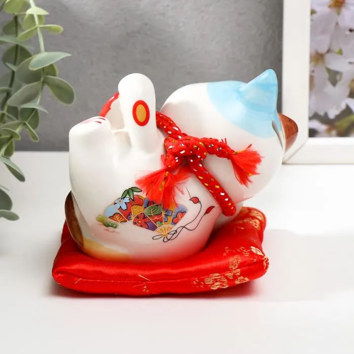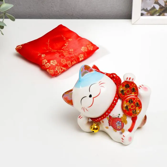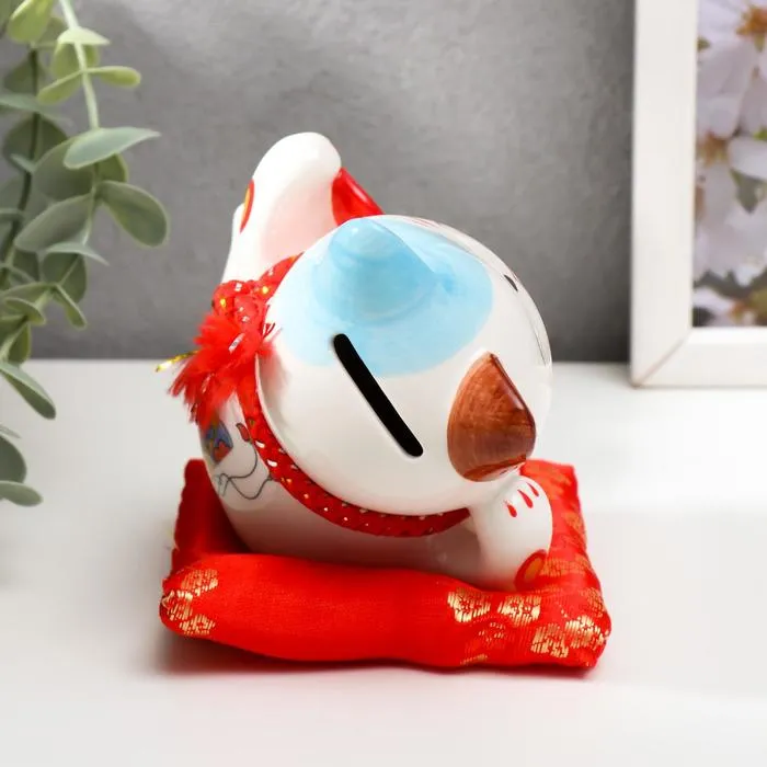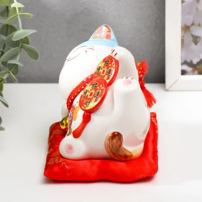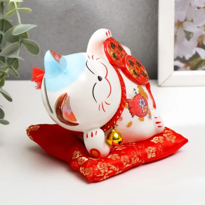 Копилка для денег «Кот Манэки-нэко с монетками на коврике», керамика, 10×12.5×7 см — Характеристики
