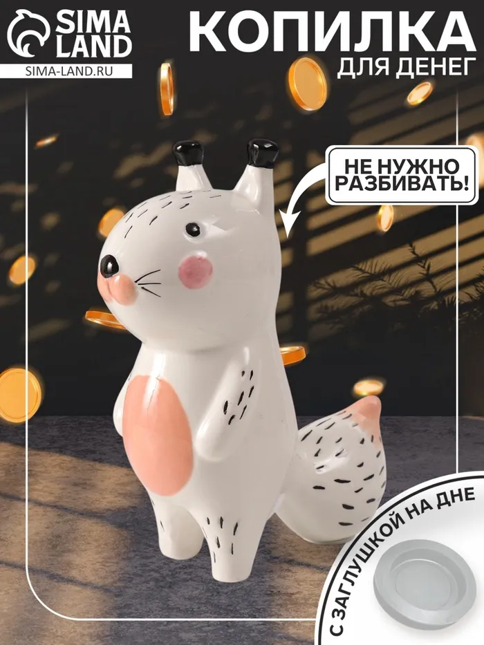 - Закрытый тип копилки с прорезью для монет и купюр.