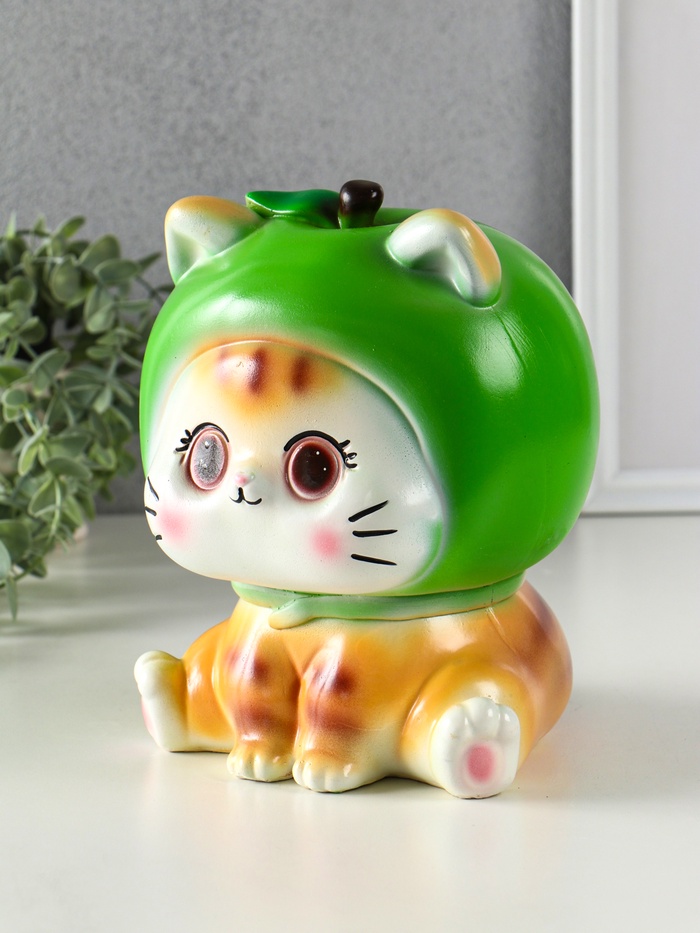 Копилка для денег «Кот в костюме яблоко», гипс, зелёный, 21×17×17 см — Характеристики