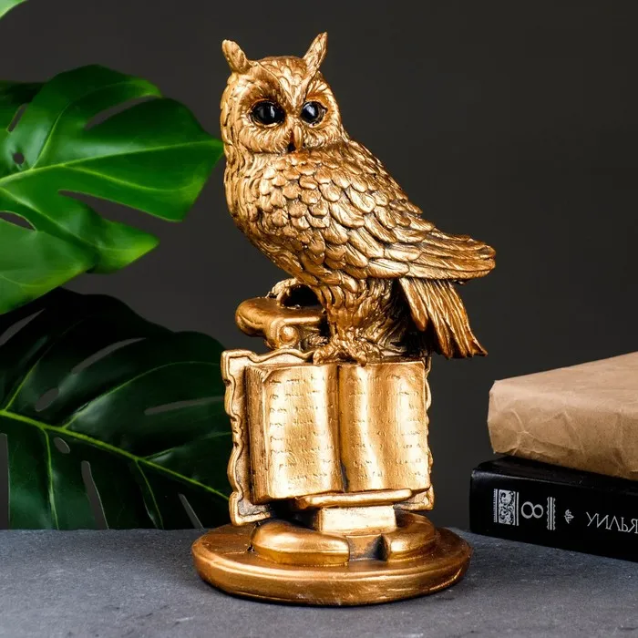 Копилка для денег «Сова в книге», гипс, бронза, 14×17×27 см