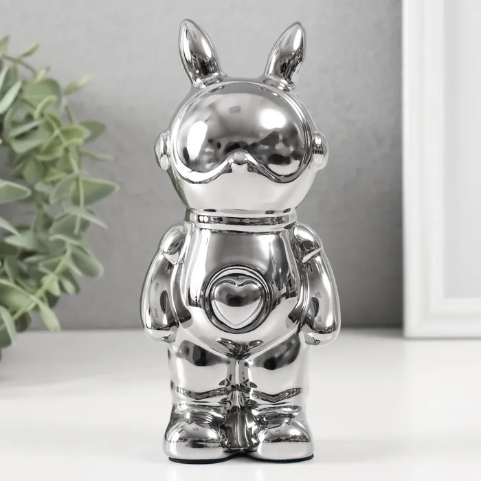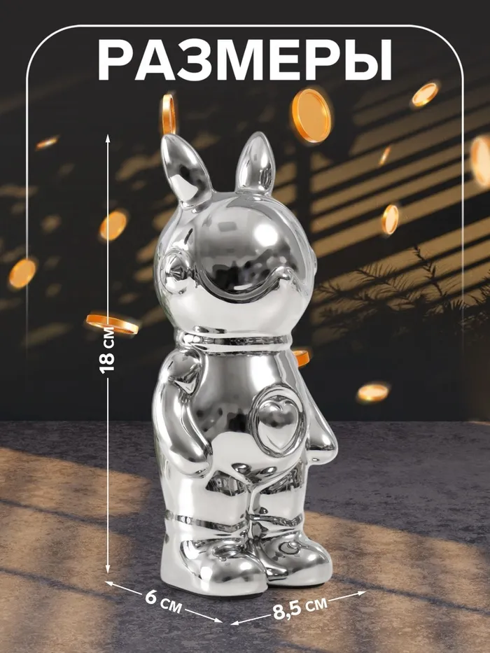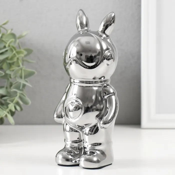 Копилка для денег «Кролик», керамика, серебро, 6×8.5×18 см — Характеристики
