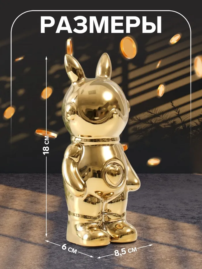 Копилка для денег «Кролик», керамика, золото, 6×8.5×18 см — Характеристики