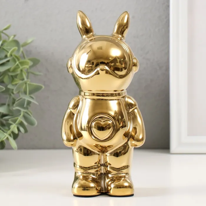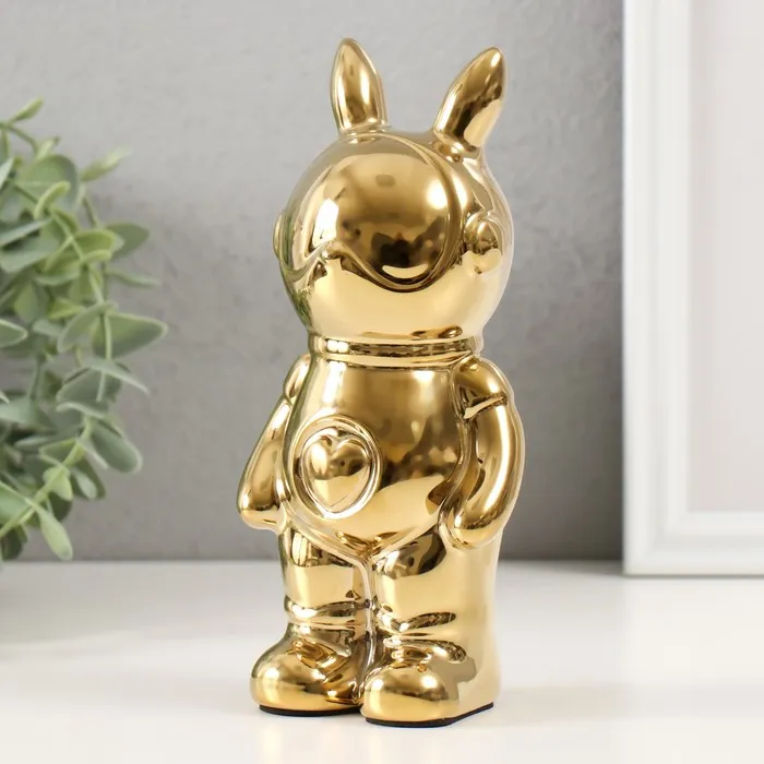 Копилка для денег «Кролик», керамика, золото, 6×8.5×18 см