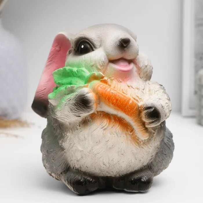 Копилка для денег «Кролик с морковкой», гипс, 15×13×13 см