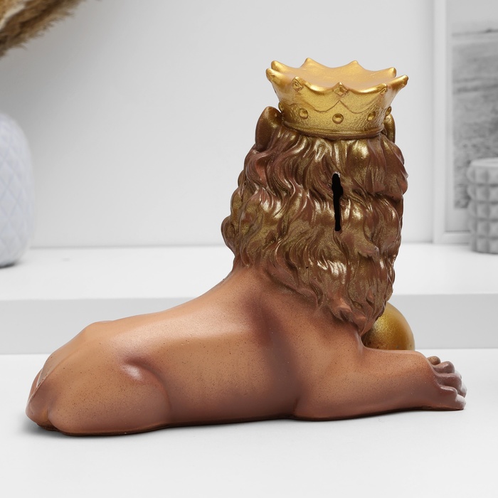 Копилка для денег «Лев с короной и шаром лежит», гипс, 19 см