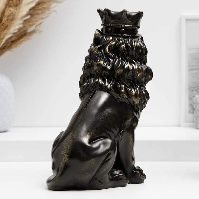 Копилка для денег «Лев с короной и шаром сидит», гипс чёрный с позолотой, 23 см