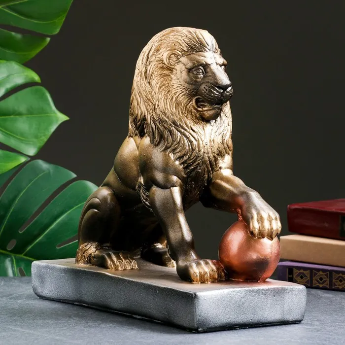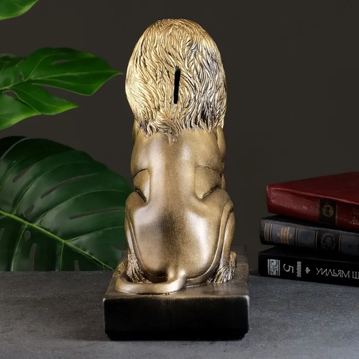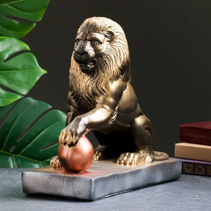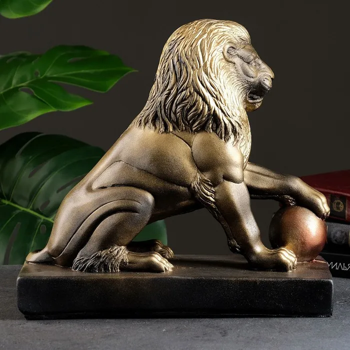 Копилка для денег «Лев с шаром», гипс, черно-золотой, 32×15×35 см — Характеристики