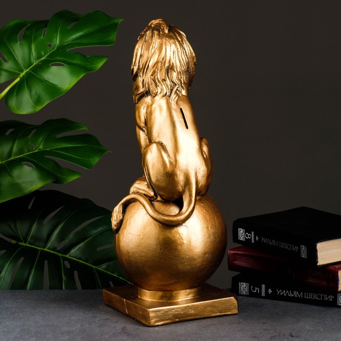 Копилка для денег «Лев сидит на шаре», гипс, бронза, 18×18×42 см