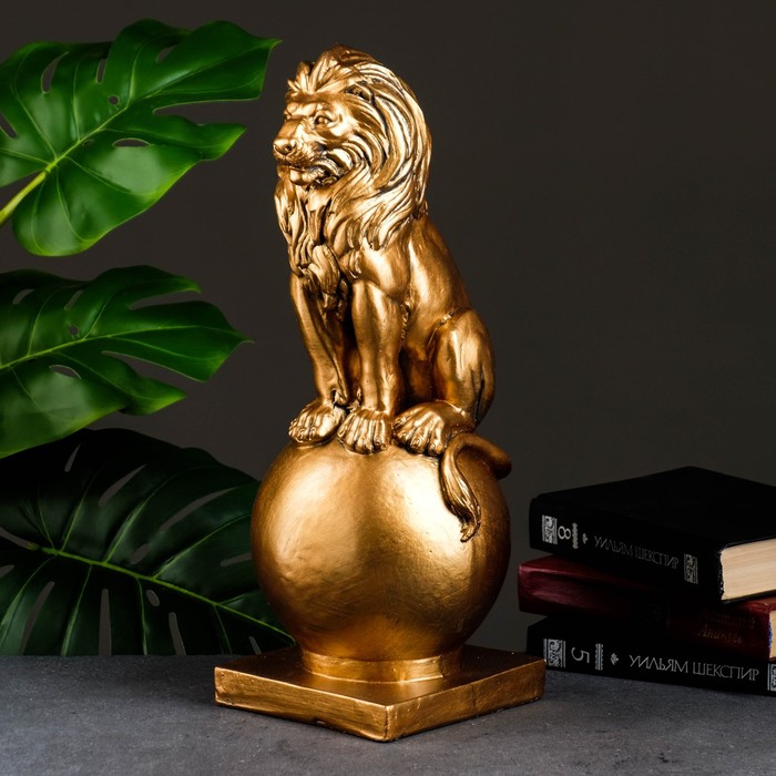 Копилка для денег «Лев сидит на шаре», гипс, бронза, 18×18×42 см — Характеристики