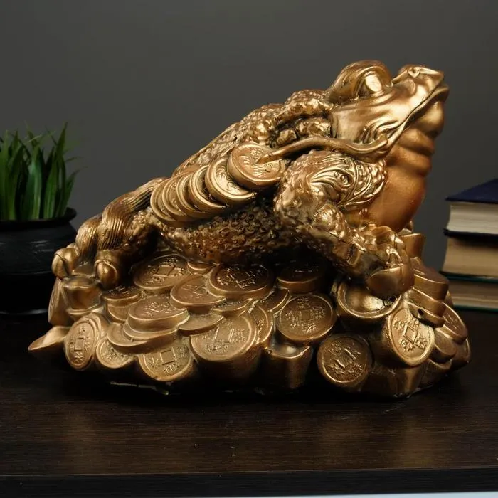 Копилка для денег «Жаба большая на деньгах», гипс, 26×32×22 см