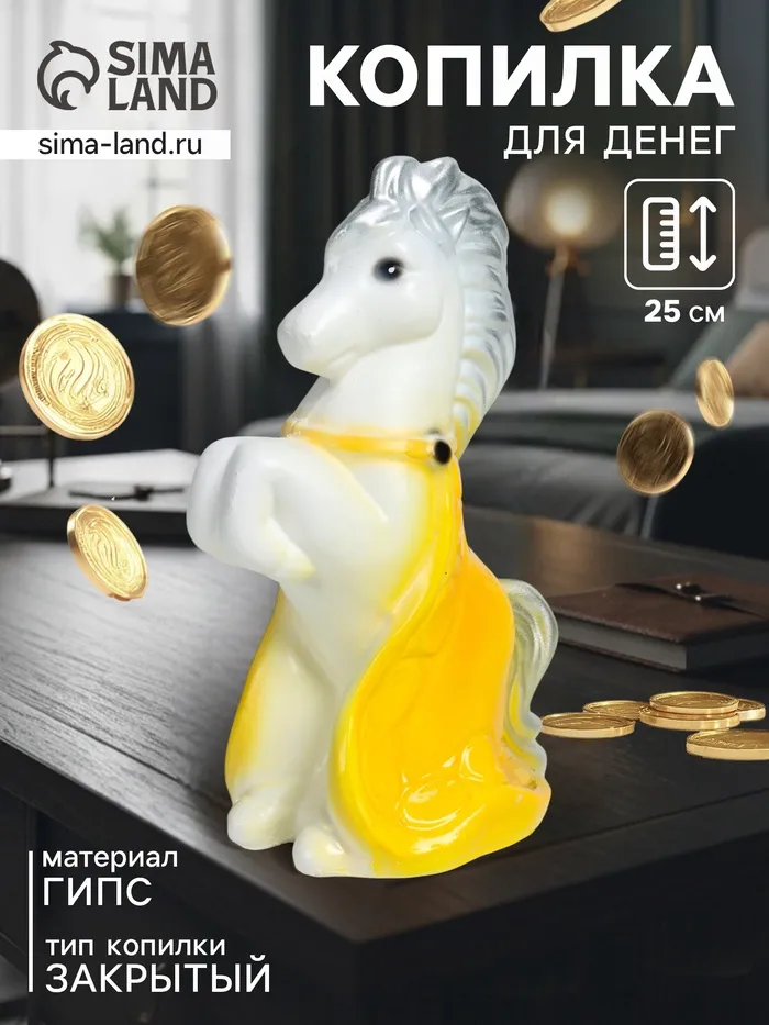 Копилка для денег «Лошадка с попоной», гипс, 25 см, белый — Характеристики