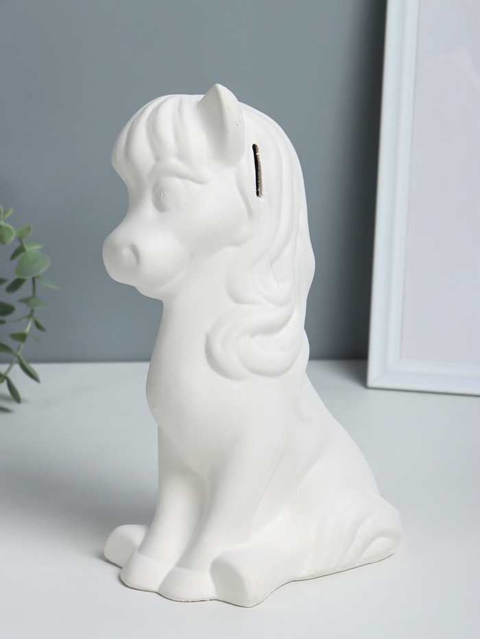Раскройте творческий потенциал и финансовую грамотность с этой уникальной заготовкой, которая сочетает в себе практическую функцию и безграничные возможности для самовыражения. Гипсовая основа высотой 27 см представляет собой фигурку жизнерадостной лошадки в динамичной позе, ожидающей вашего художественного воплощения.