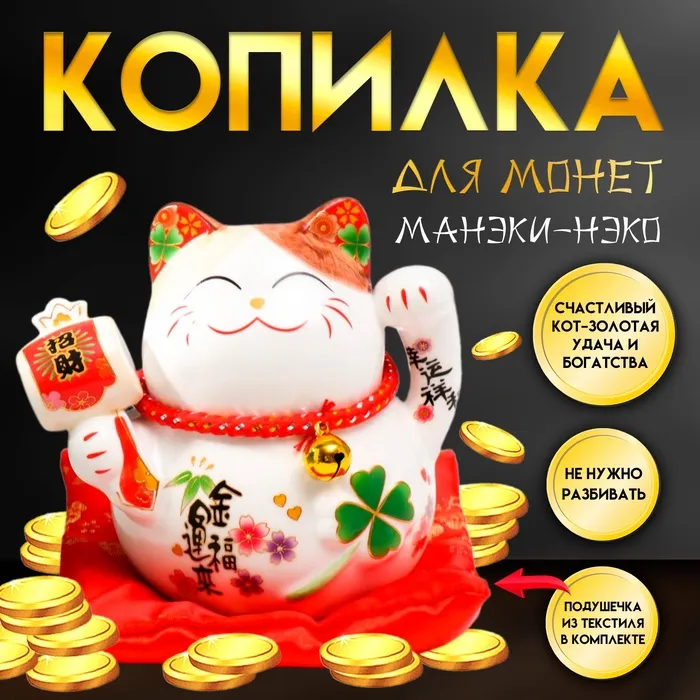Копилка для денег «Манэки-нэко белый с молоточком», керамика, 11×10.5×9.5 см — Характеристики