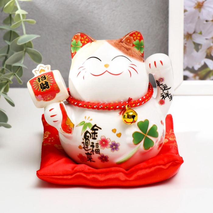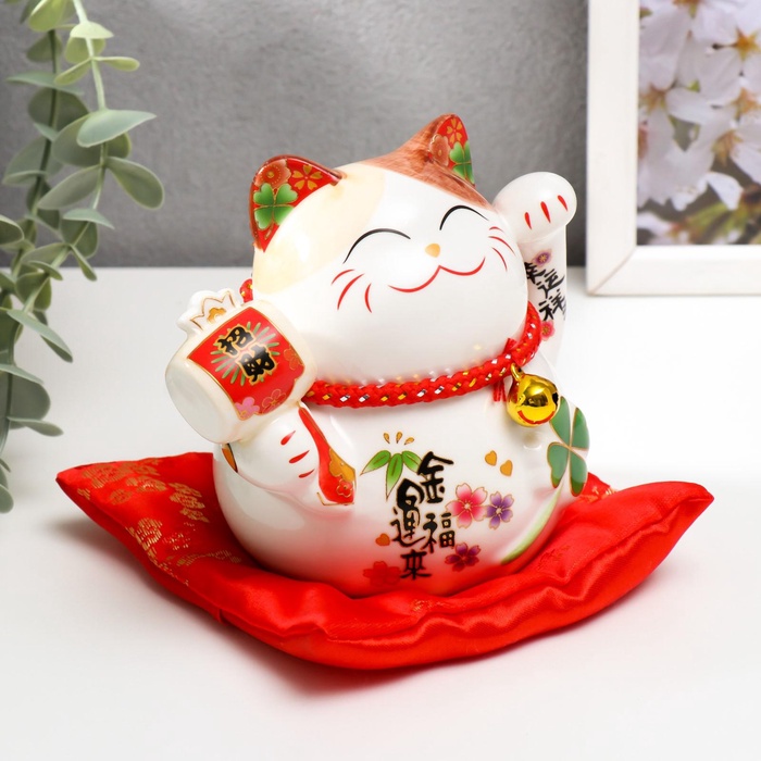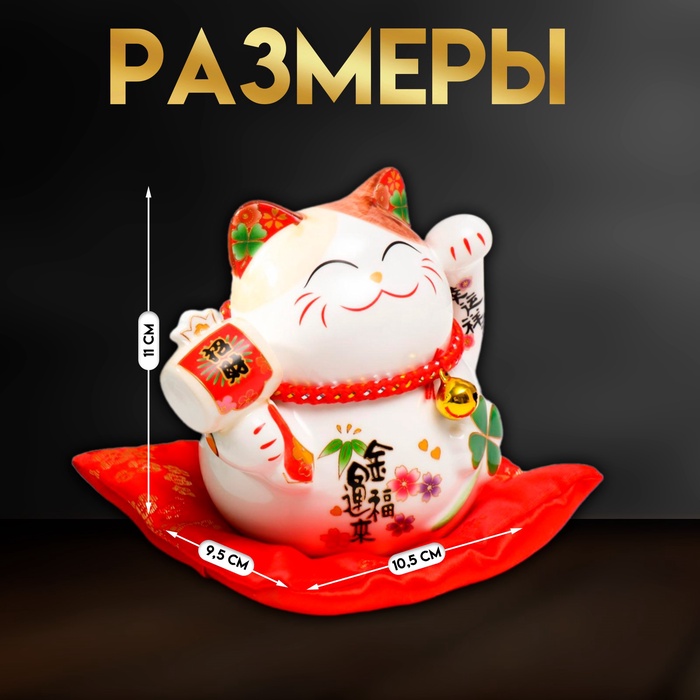 Копилка для денег «Манэки-нэко белый с молоточком», керамика, 11×10.5×9.5 см — Характеристики