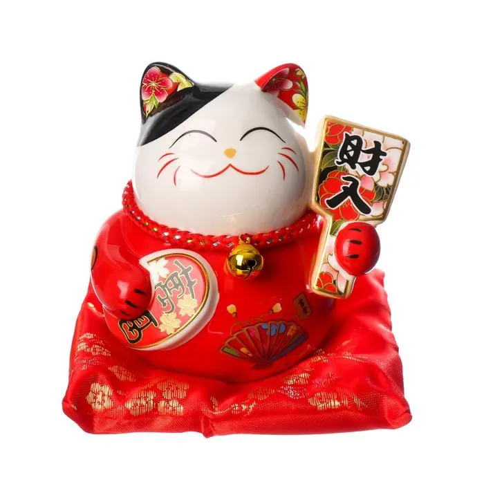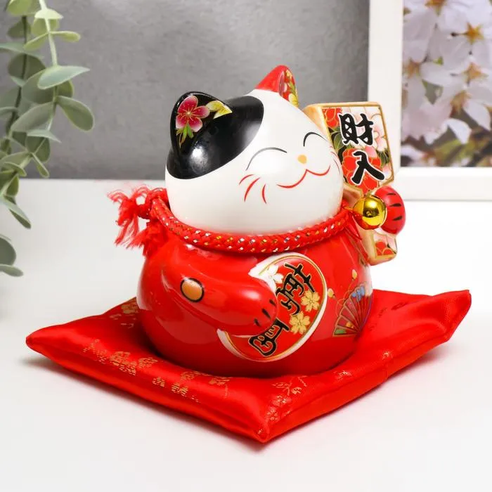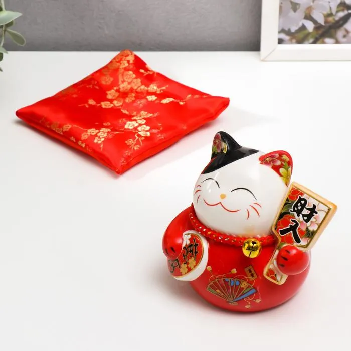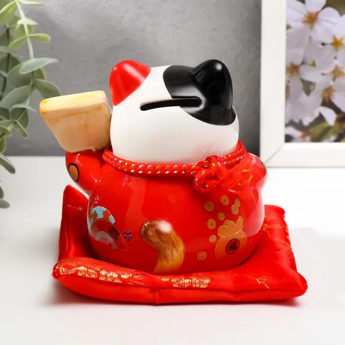 Копилка для денег «Манэки-нэко красный с опахалом», керамика, 11×10.5×9.5 см — Характеристики