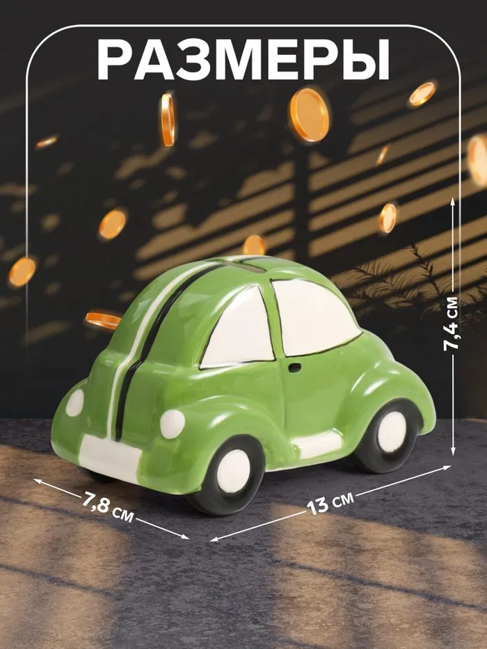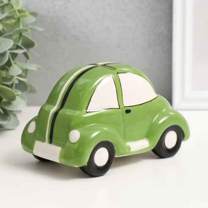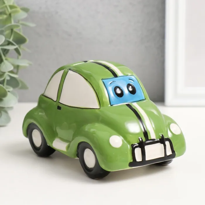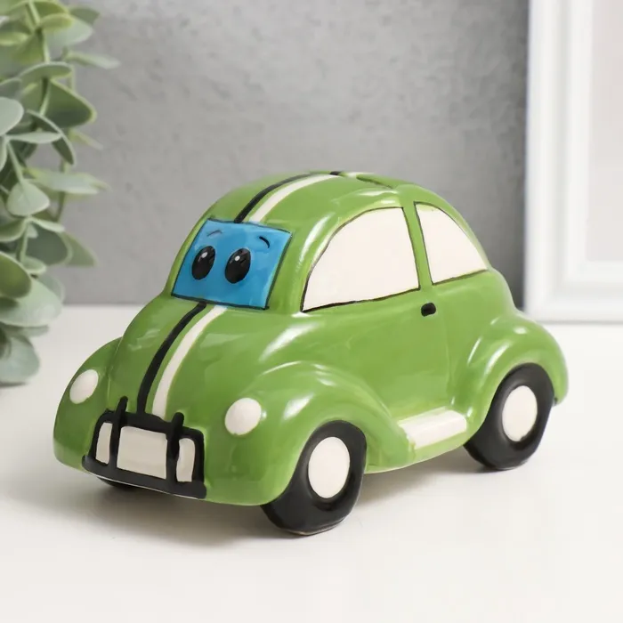 Копилка для денег «Машинка с глазками», керамика, зелёная, 13×7.8×7.4 см — Характеристики