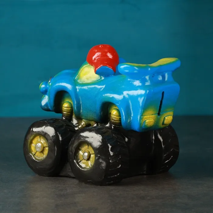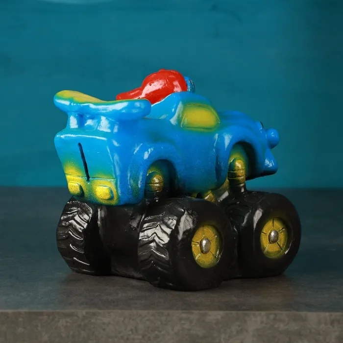 Копилка для денег «Машинка в кепке», гипс, синий, 15 см