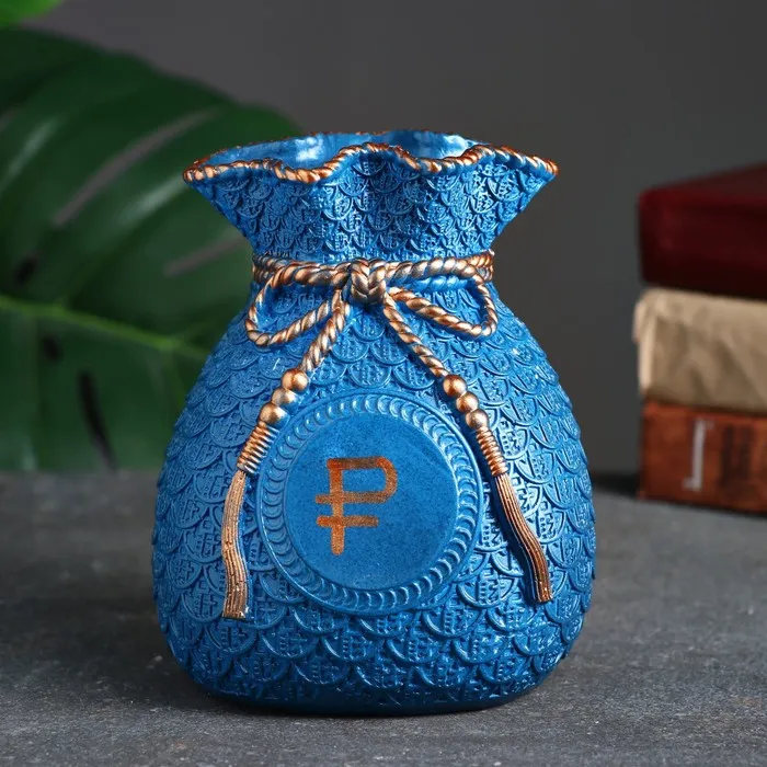 Копилка для денег «Мешок денег: рубль», гипс, синий, 15 см — Характеристики