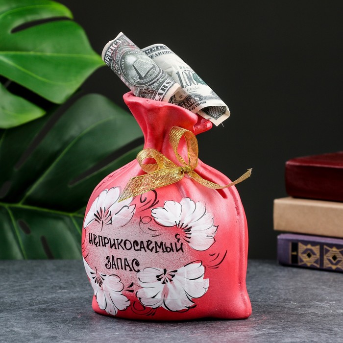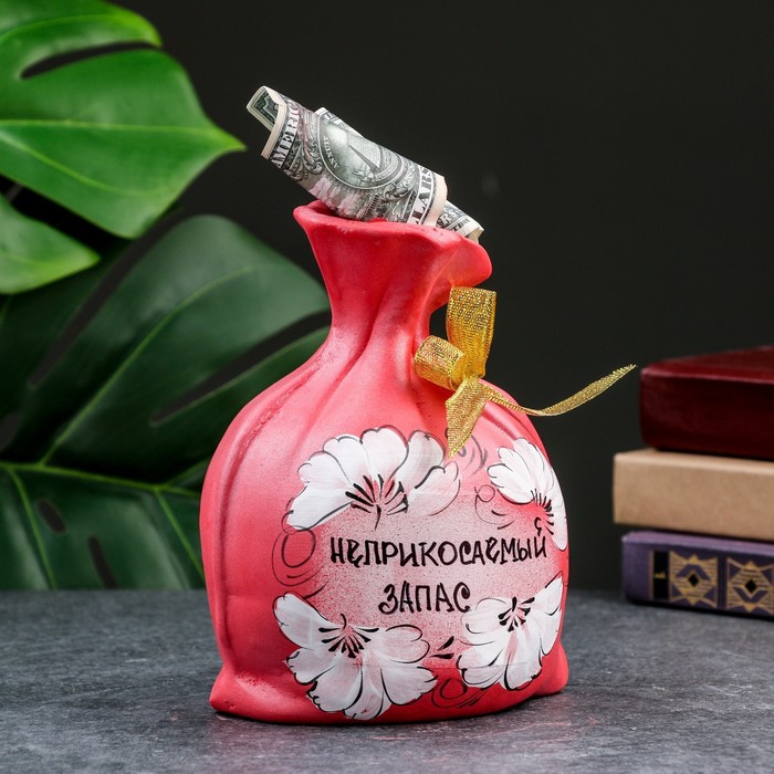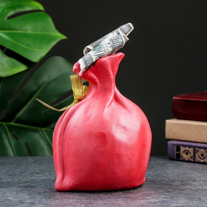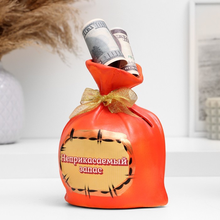 Копилка для денег «Мешок: неприкасаемый запас», гипс, красная, 17 см — Характеристики