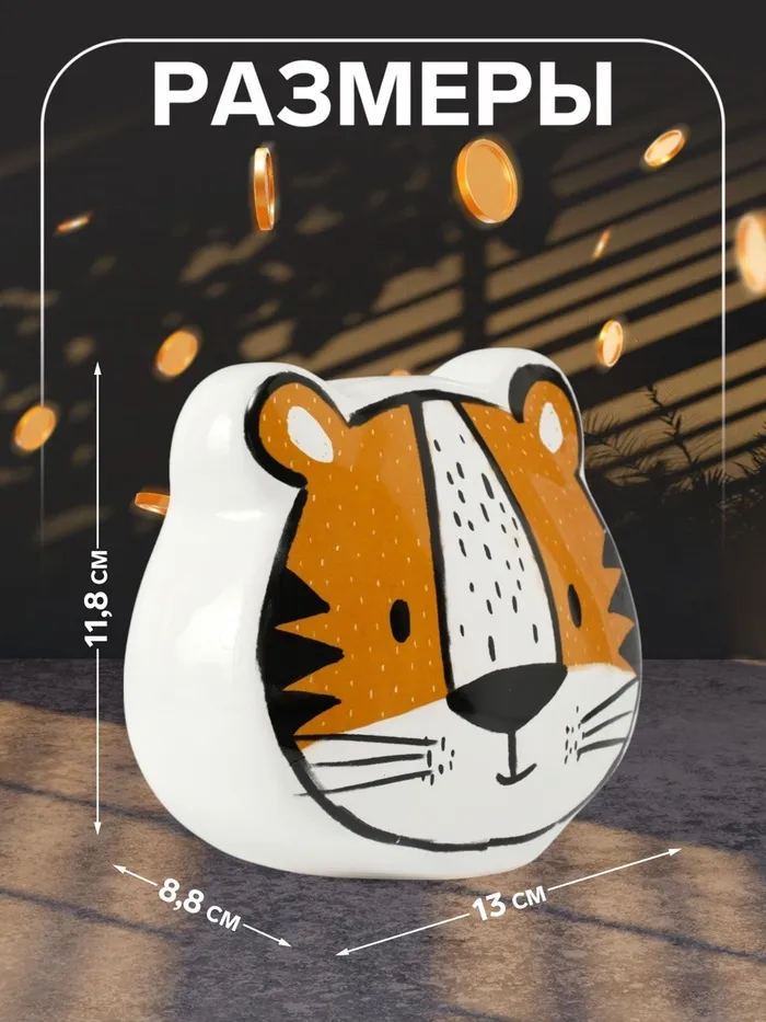 Копилка для денег «Милый тигрёнок», керамика, 8.8×13×11.8 см — Характеристики