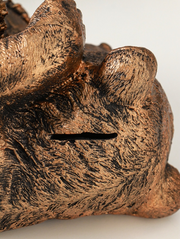 Эта копилка-медведь под бронзу — не просто сувенир, а верный финансовый союзник. Лежащая фигура бурого медведя символизирует надёжность, спокойствие и накопленную мощь, превращая процесс сбережения в красивый ритуал.