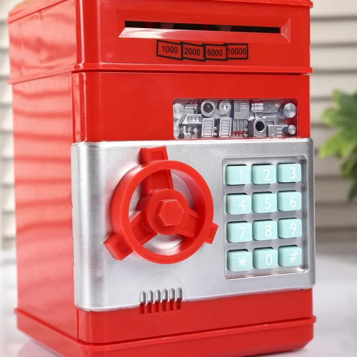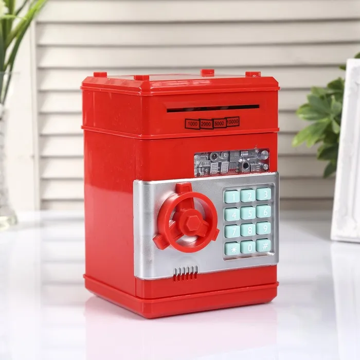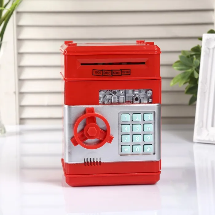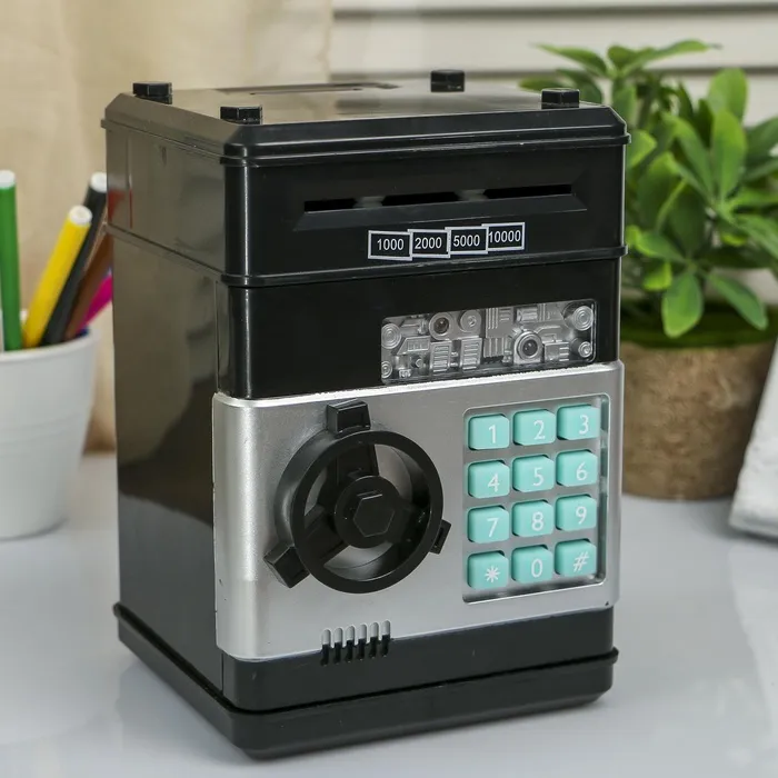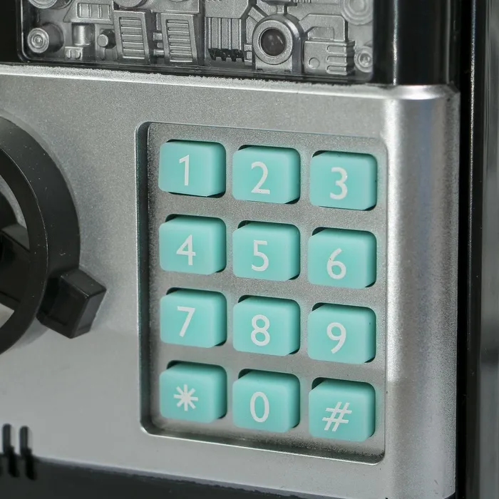 Копилка для денег, монет и купюр «Сейф», пластик, кодовый замок, звук, 3АА, 19.5×12.3×13 см, МИКС — Характеристики