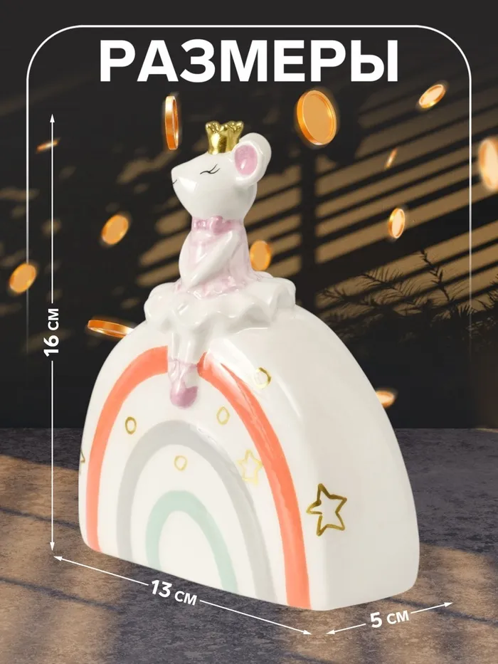 Копилка для денег «Мышка-принцесса», керамика, 5×13×16 см — Характеристики