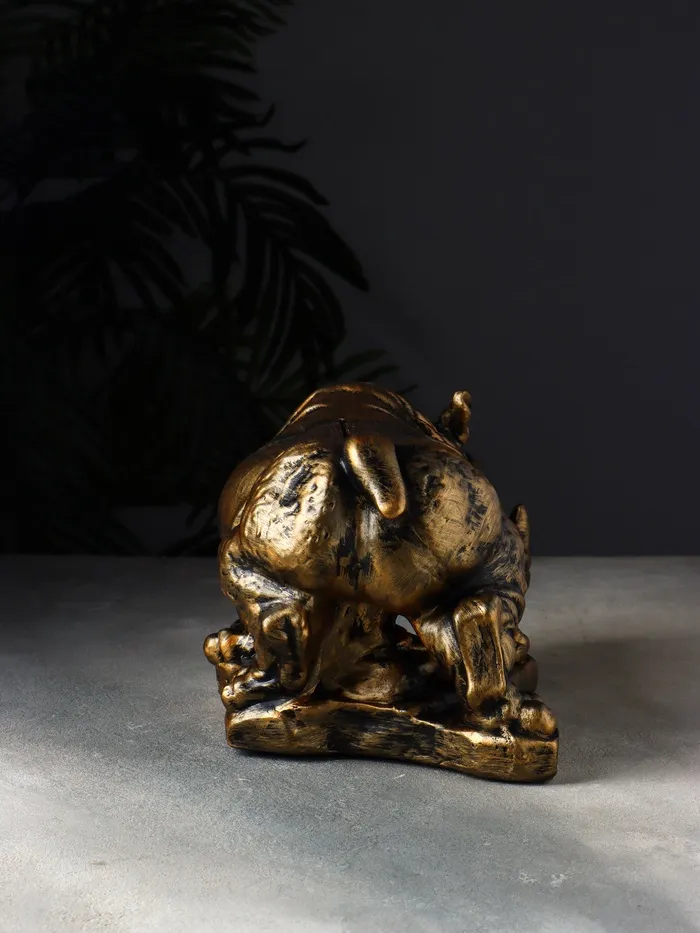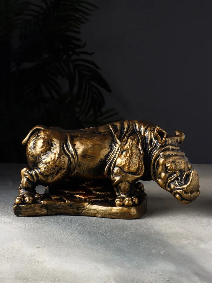 Превратите процесс накопления в эстетическое удовольствие с этой величественной копилкой в виде носорога. Скульптурная форма животного, выполненная из гипса с эффектом бронзового покрытия, придаст вашему интерьеру нотку благородства и экзотики.