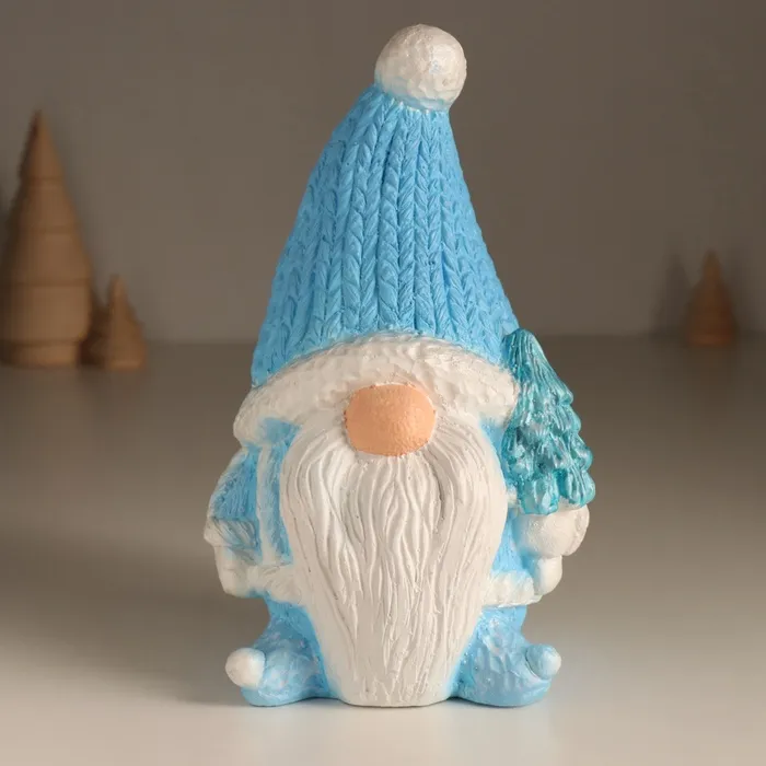 Копилка для денег «Новогодний гном», гипс, голубой, 19×11×10.5 см — Характеристики