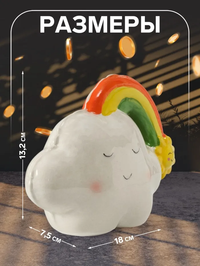 Копилка для денег «Облачко-шарик с радугой», керамика, 7.5×18×13.2 см — Характеристики