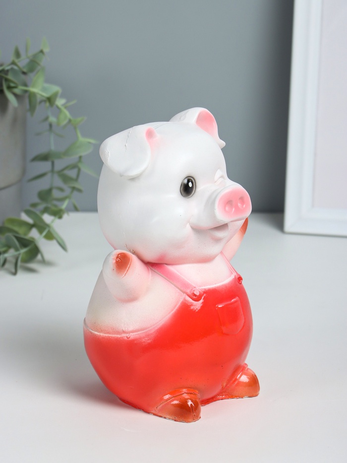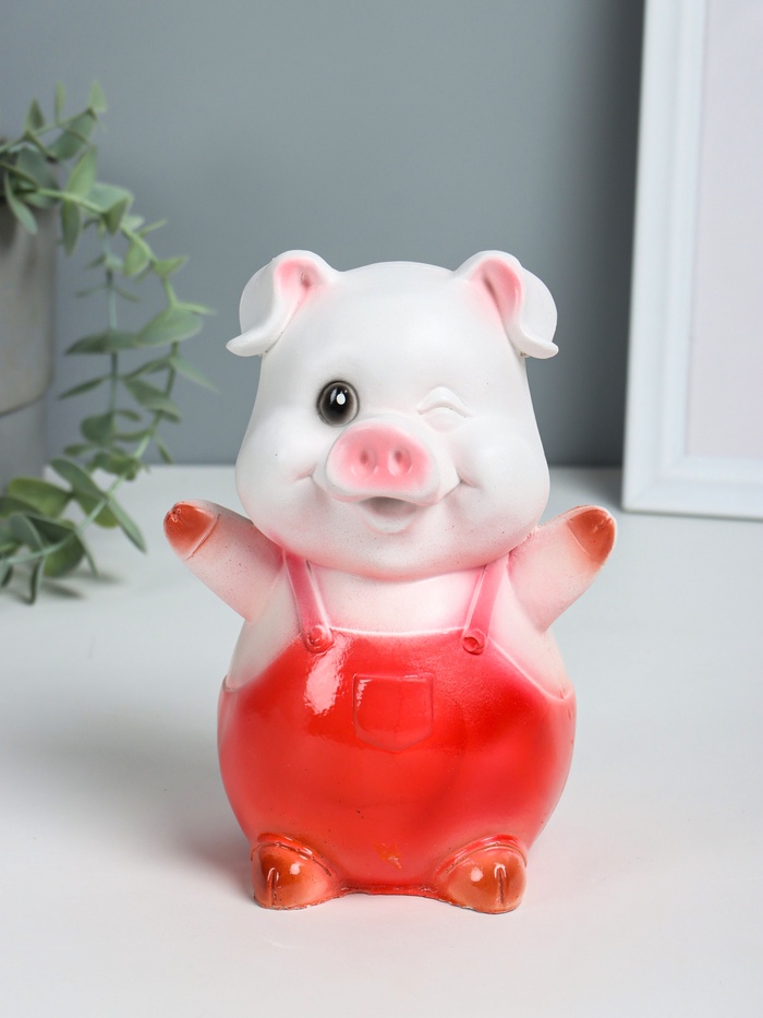 Искусно выполненный из высококачественного гипса, он обладает приятной матовой текстурой и солидным весом, что подчеркивает его надежность. Яркая ручная роспись делает каждую деталь — от забавного пятачка до веселого хвостика — выразительной и уникальной. Компактный размер в 18 см позволяет ему органично вписаться в интерьер любого помещения, будь то детская комната, кухня или рабочий кабинет.