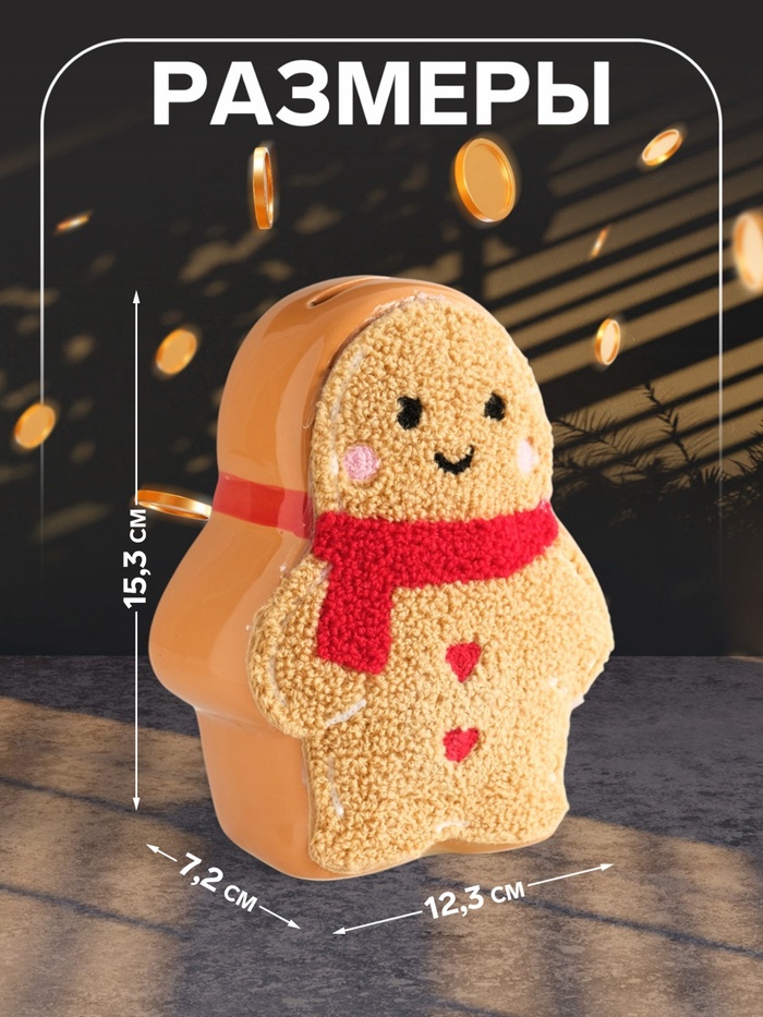 Копилка для денег «Пряничка в уютном шарфике», керамика, 7.2×12.3×15.3 см — Характеристики