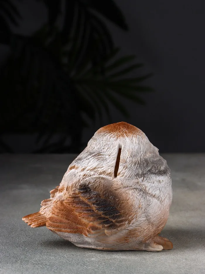 Искусно выполненная из прочного полистоуна и покрытая стойкими красками, эта копилка сохранит насыщенность цветов и детализацию на долгие годы. Её открытый дизайн делает процесс использования максимально удобным — вам не придётся расставаться со своим пернатым другом, когда потребуется доступ к накоплениям.
