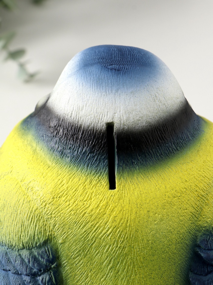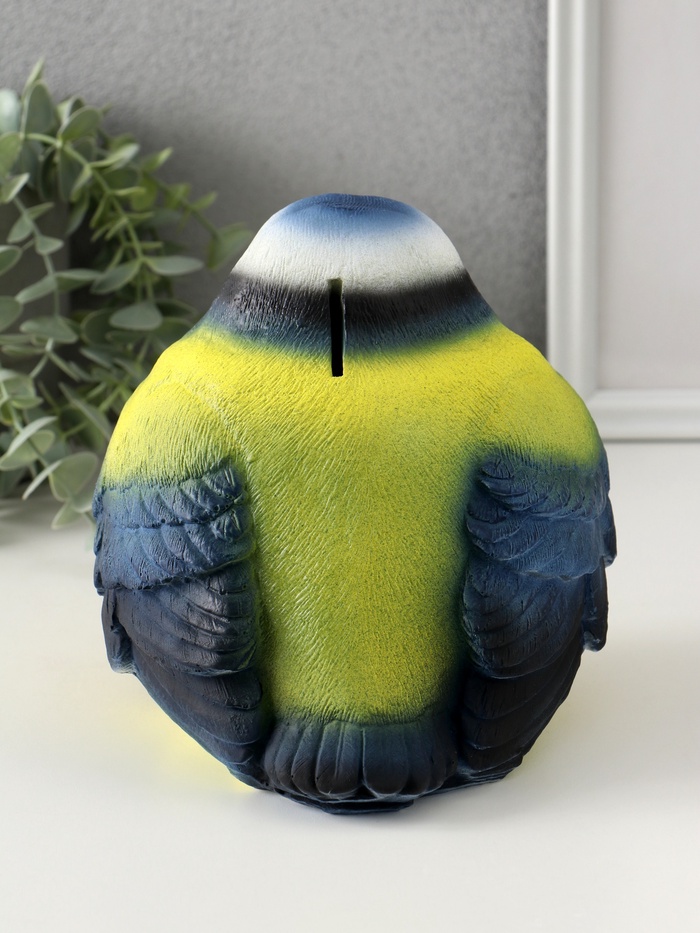 Изделие выполнено из высококачественного гипса, который обеспечивает прочность и долговечность. Размеры 17×17×18 см позволяют разместить её практически в любом месте: на полке, столе или даже на подоконнике. Разноцветное покрытие, выполненное с использованием краски, придаёт копилке особую выразительность, а детализированный дизайн передаёт характер и очарование синицы с удивительной точностью.