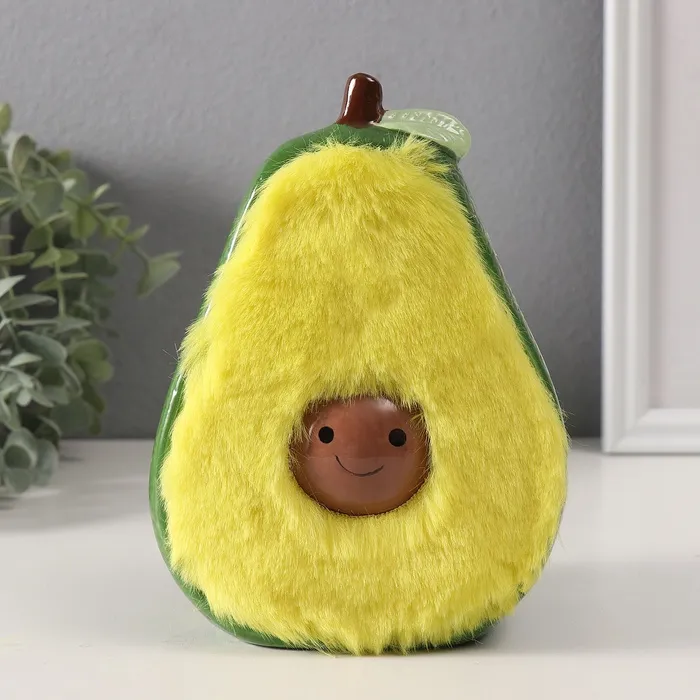 Керамическая копилка «Пушистое авокадо» добавит яркости и уюта в ваш интерьер. Этот зелёный фрукт с глазурованным покрытием и искусственным мехом станет не только стильным украшением, но и практичным помощником в накоплении средств.