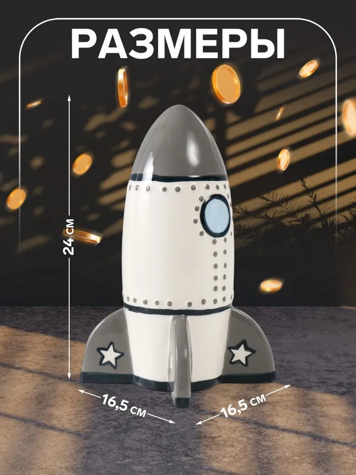 Копилка для денег «Ракета», керамика, 16.5×16.5×24 см — Характеристики