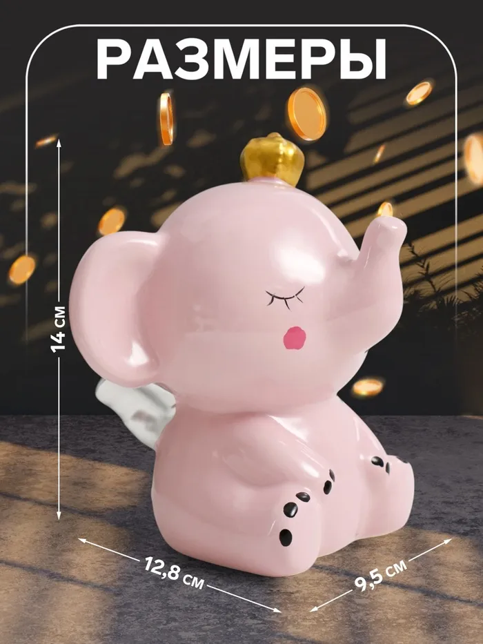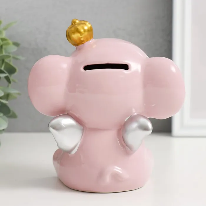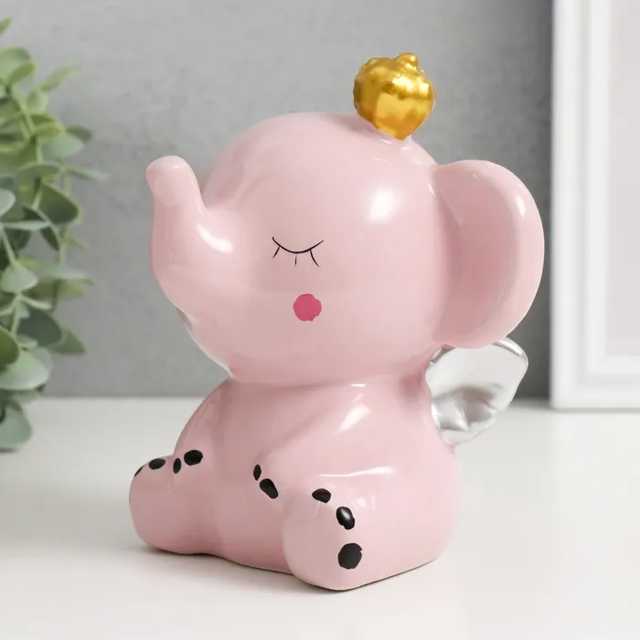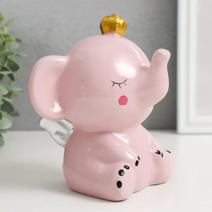 Копилка для денег «Розовый слонёнок с крыльями в короне», керамика, 12.8×9.5×14 см — Характеристики