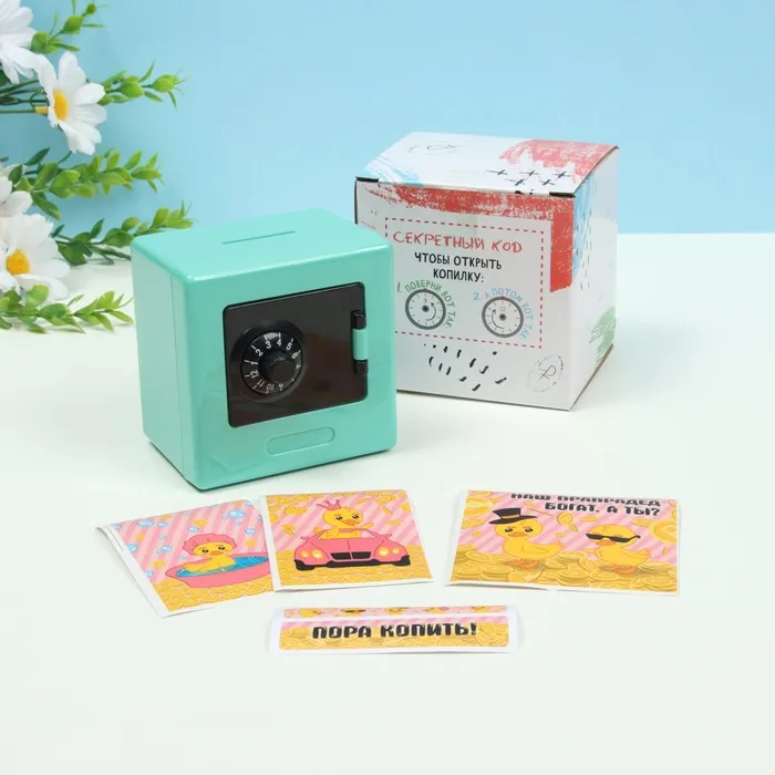 Копилка для денег с кодовым замком «Сейф. Утки миллионеры», пластик, 8.5×6×8.5 см, МИКС — Характеристики