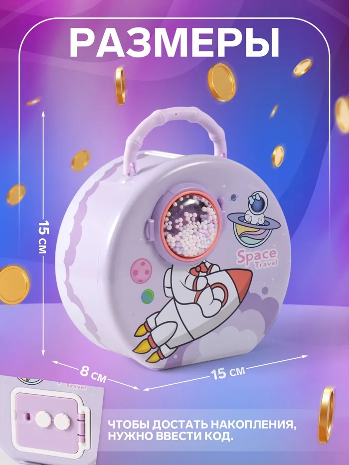 Копилка для денег с сейфовым замком «Космос», металл, 8×15×15 см, МИКС — Характеристики