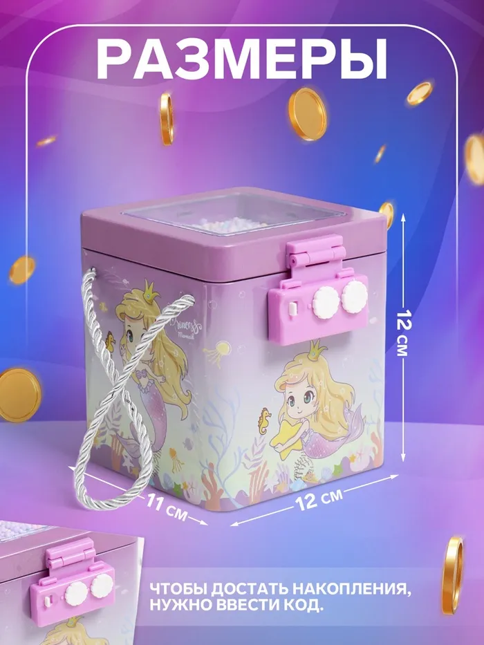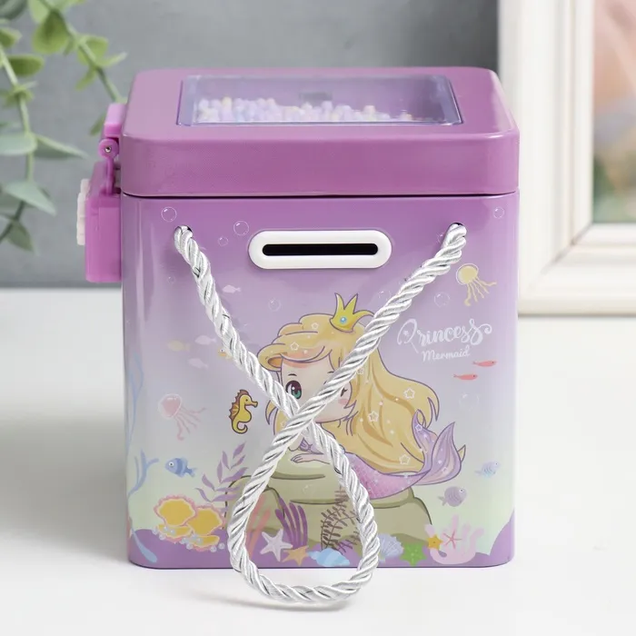 Копилка для денег с сейфовым замком «Сказочные сюжеты. Квадрат», металл, 12×11×12 см, МИКС — Характеристики