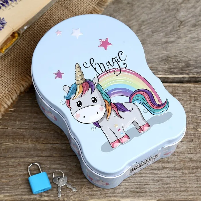 Копилка для денег с замком и ключами «Единорожек», металл, 17×6×14 — Характеристики