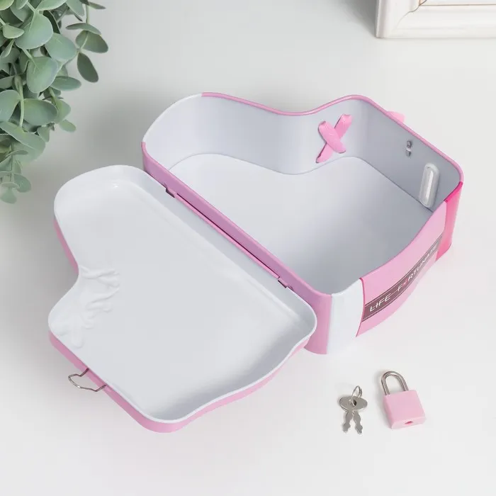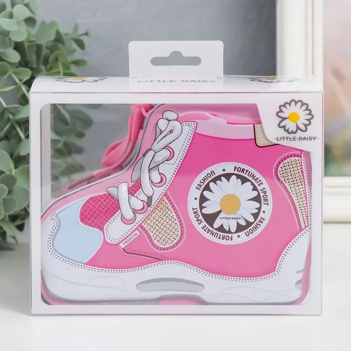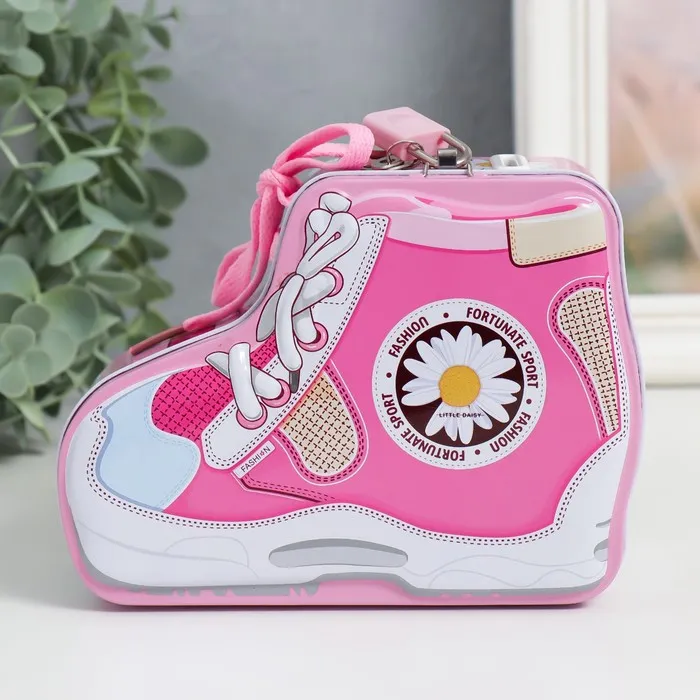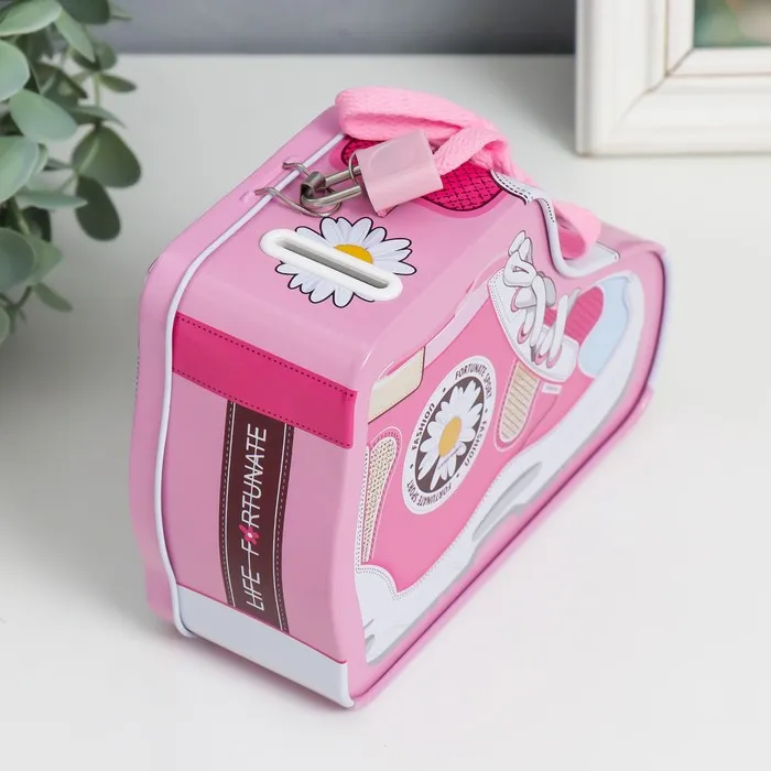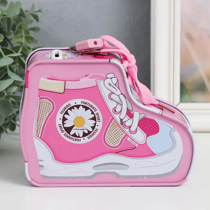 Копилка для денег с замком и ключами «Кед с ромашкой», металл, 7×16×12 см, МИКС — Характеристики