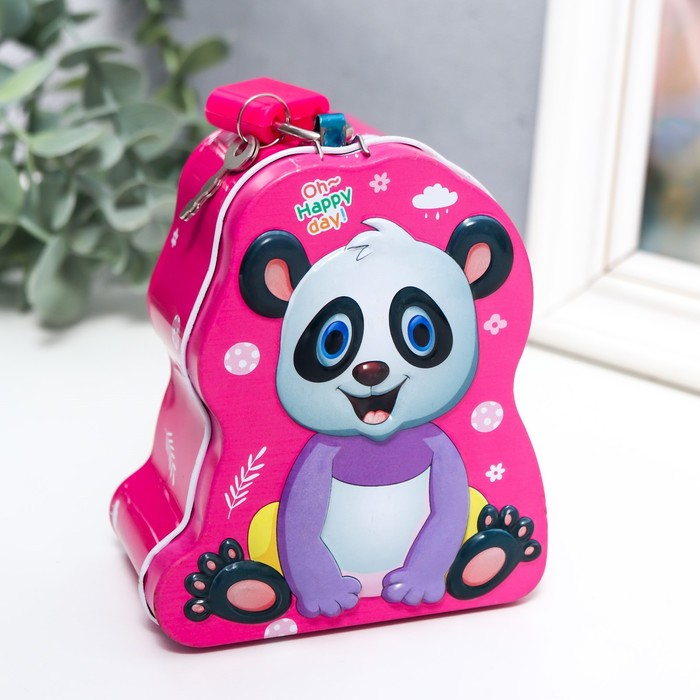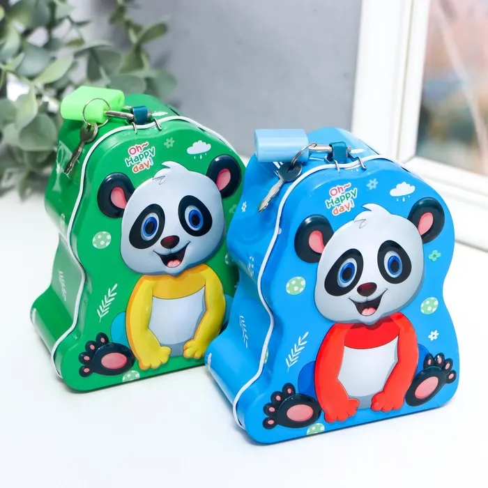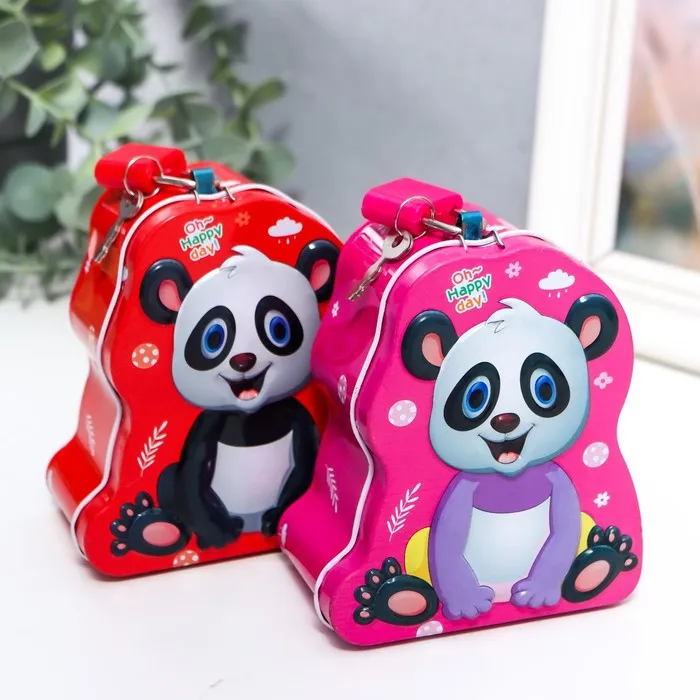 Копилка для денег с замком и ключами «Маленькая панда», металл, 10×5×8.5 см, МИКС — Характеристики