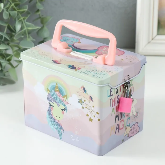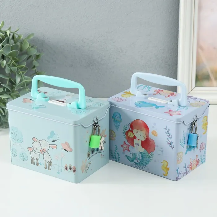 Копилка для денег с замком и ключами «Сказка», 13×10×9 см, МИКС — Характеристики
